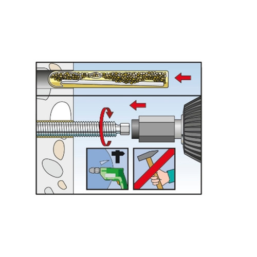 De fischer Draadstang RG M is van gegalvaniseerd staal in de staalkwaliteit 5.8 gemaakt. De draadstang is een systeemtoebehoren voor de diverse fischer mortelpatronen of injectiemortel. Voor afzonderlijke bevestigingen is het gebruik van de vooraf geportioneerde mortelpatronen bijzonder efficiënt. Bij de montage met de mortelpatroon wordt de fischer Draadstang RG M met behulp van een boorhamer draaiend-tikkend aangebracht. Tijdens het plaatsen wordt de mortelpatroon kapotgemaakt, gemengd en de mortelmassa geactiveerd. Bij de montage met de injectiemortel wordt de ankerstang handmatig door middel van lichte draaibewegingen in het boorgat geschoven. Het systeem is bijzonder geschikt voor een efficiënte bevestiging van machines, staalconstructies en steunpoten binnenshuis.