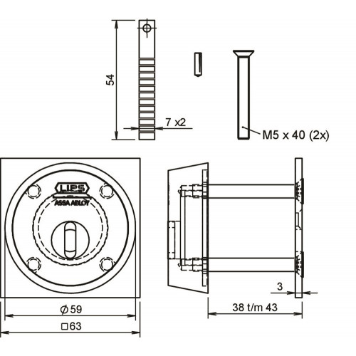 Geschikt voor situaties waarin LIPS en Nemef veiligheidsoplegsloten met losse buitencilinder (1704, 1734, 1742, 1744, 1754) en vaste buitencilinder (1703, 1733, 1743, 1753) gemonteerd zijn. Geschikt voor deurdikte 38-42mm (losse buitencilinder) of deurdikte 38-39mm (vaste buitencilinder). Niet geschikt voor veiligheidsoplegsloten met Octro en LIPS-Keso cilinders.