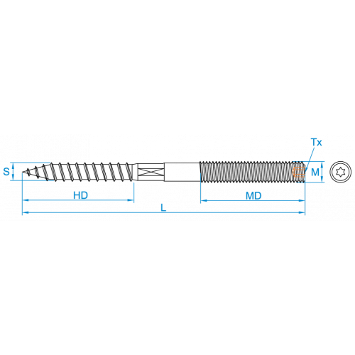 STOKEIND M.BUITENZESKANT EN TORX M8 X 60