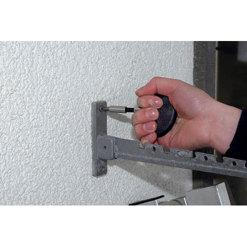 Met de haakschroevendraaier vereenvoudigt u op eenvoudige wijze het bevestigen van haak- en ringschroeven. De zeskant-¼"-aandrijving maakt een snelle gereedschapswissel en een goede houvast in de bithouder mogelijk. Deze kan ook probleemloos met gangbare grepen of accumachines (max. 25 rpm) met ¼"-zeskanthouder (6,35 mm) worden gebruikt. De ergonomische handgreep in T-vorm zorgt voor een optimale krachtoverbrenging onder elke werkhoek. De handgreep met zeskantopname kan daarnaast als handschroevendraaier voor bits of dopsleutels worden gebruikt. De haakschroevendraaier is een hoogwaardig en veelzijdig stuk gereedschap dat in geen werkplaats mag ontbreken.