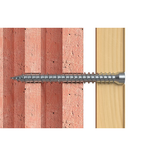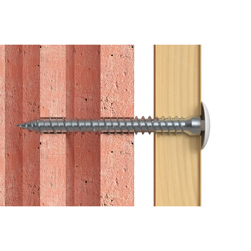 De fischer Kozijnschroef FFSZ met cilinderkop is een speciale schroef voor de efficiënte montage van raamkozijnen. De schroef kan na het boren direct in het massief of poreus bouwmateriaal worden gedraaid. De doorlopende speciale draad voorkomt het tegen de ondergrond aantrekken van het kozijn. Daarmee wordt deze spanningsvrij en voor een lange levensduur bevestigd.